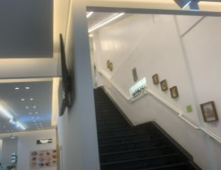 입구 바로 앞에는 계단이 있고, 엘리베이터는 쇼품샵을 쭉 지나가면 있어요.