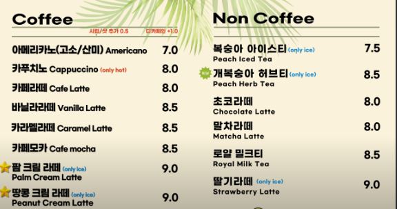 저희는 점심을 먹고 간지라 배불러서 베스트 음료만 먹었어요.